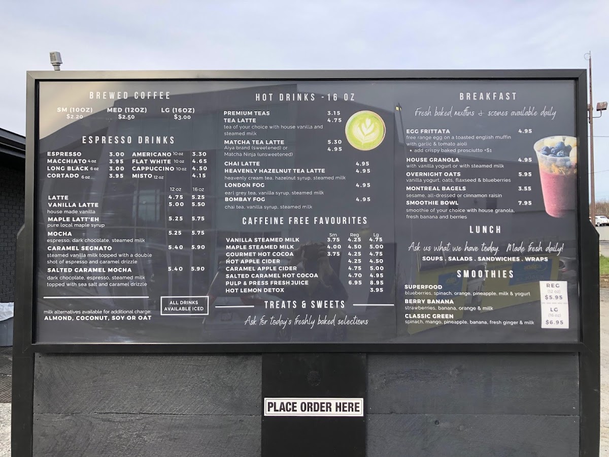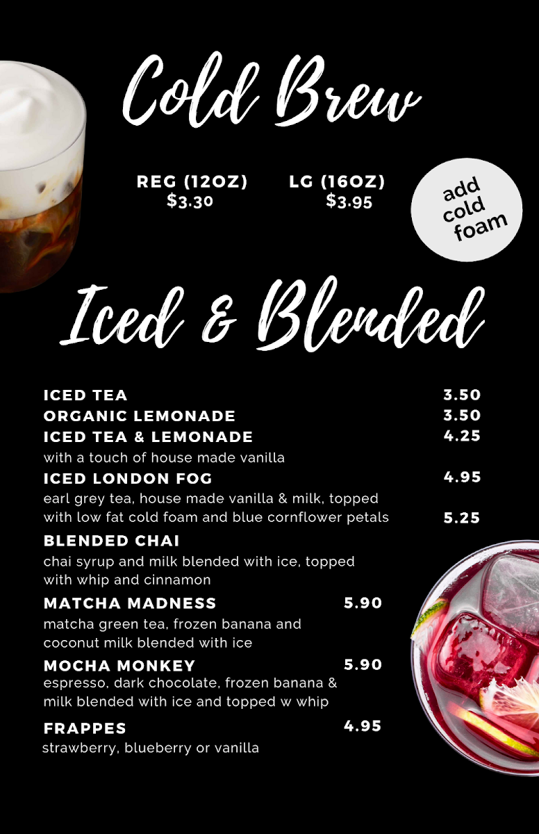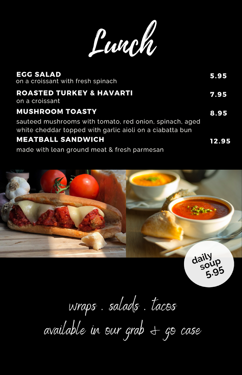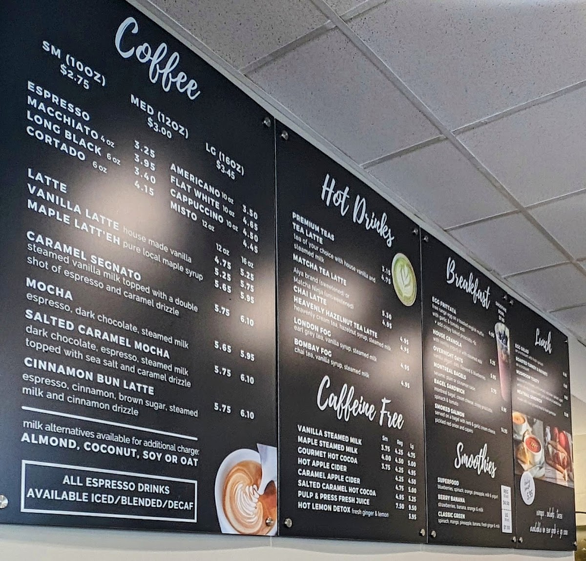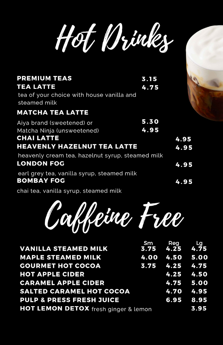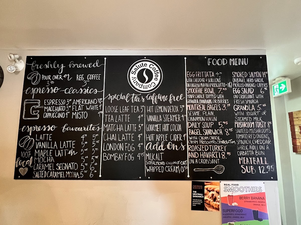 From a reviewer’s perspective, the menu at Salute Coffee Company feels like a carefully curated wrap-up of everything a modern café should offer, blending seasonal creativity with dependable classics. The drink selection opens warmly with comforting highlights like Pumpkin Spice Latte, Caramel Apple Cider, and Autumn Mist Tea Latte, setting an inviting tone that carries through the rest of the menu. Coffee lovers are well served with timeless options such as Espresso, Macchiato, Long Black, Cortado, and Cappuccino, while the Espresso-Classics and Espresso Favourites sections reinforce that foundation with crowd-pleasers like Americano, Flat White, Latte, Vanilla Latte, and Salted Caramel Mocha. For guests seeking variety beyond traditional coffee, the hot drink lineup-Tea Latte, Matcha Tea Latte, Chai Latte, and Heavenly Hazelnut Tea Latte-adds comforting depth, echoed again in the thoughtfully prepared caffeine-free choices such as Vanilla Steamed Milk, Maple Steamed Milk, Gourmet Hot Cocoa, and Hot Apple Cider. Health-conscious and low-carb customers are clearly considered with The Americano, Keto Vanilla Latte, Keto Cappuccino, Cold Brew Coffee, and non-coffee options like Keto Strawberry Frappe and Iced London Fog, while smoothie fans can enjoy Berry Banana, Superfood, and Classic Green. Seasonal flair truly shines in the holiday offerings-Peppermint Mocha, Candy Cane Hot Chocolate, Egg Nog Latte, Gingerbread Latte, and Gingerbread Tea Latte-which pair perfectly with iced and blended refreshers such as Iced Tea, Organic Lemonade, Iced Tea & Lemonade, Blended Chai, and Iced London Fog. Rounding out the experience, the fresh baking selection-Scones, Muffins, Un-Beetable Chocolate Cake, Breakfast Cookie, Peanut Butter Protein Ball, and the standout Pumpkin Scone With Cinnamon Spice Glaze-provides a satisfying finish. Altogether, the menu feels complete and well-balanced, leaving a lasting impression of comfort, quality, and thoughtful variety that neatly sums up the Salute Coffee Company experience.
